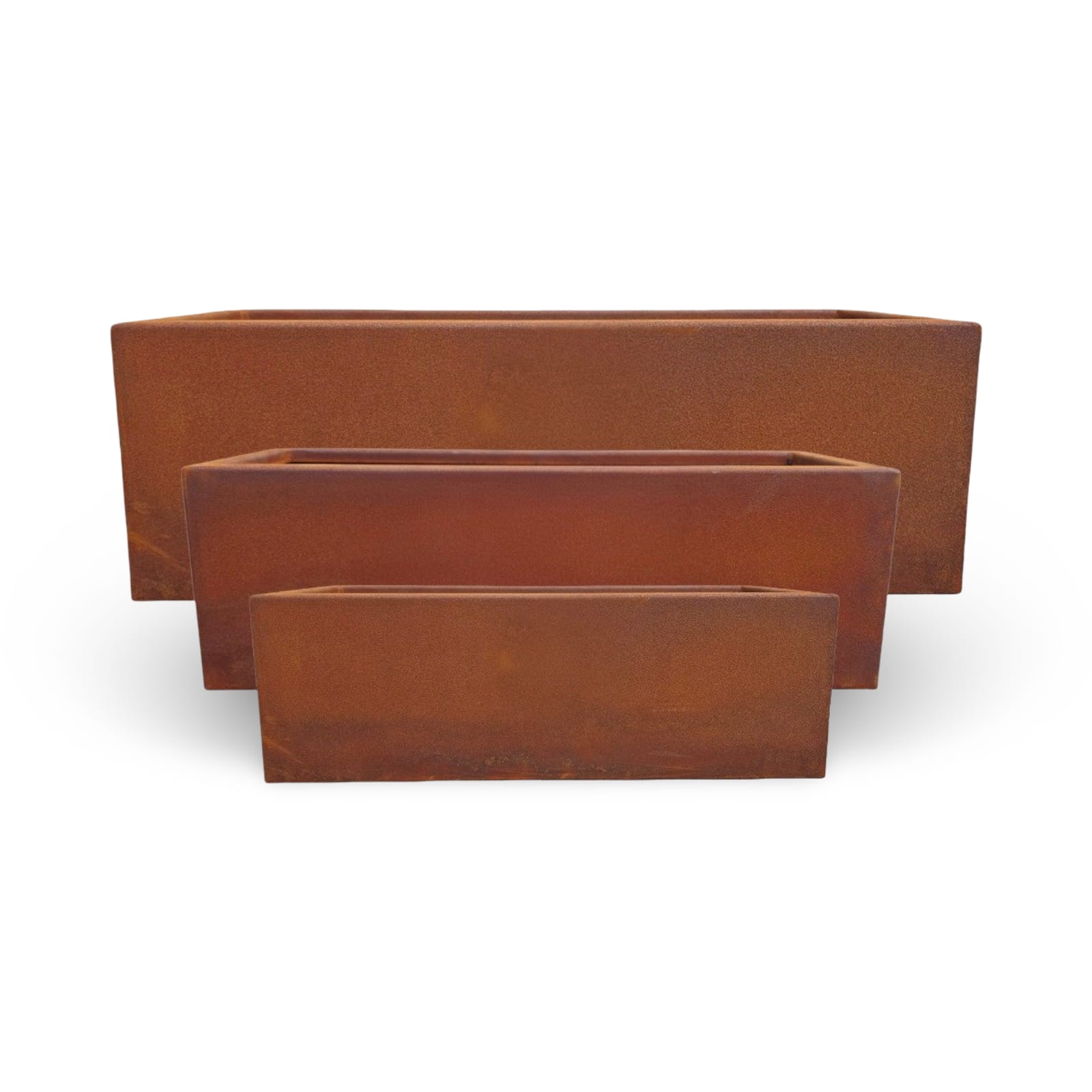אדניות קורטן בגדלים שונים, עשויות מתכת עם גימור חלוד טבעי. פתרון עיצובי מושלם לגינה, מרפסת או פנים הבית. עמידות גבוהה, מראה מודרני ואסתטי.